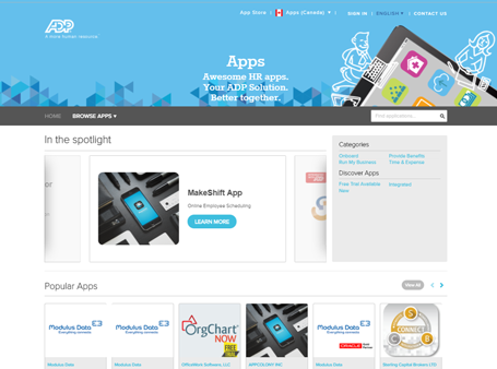 ADP Marketplace est notre vitrine virtuelle en matière de RH. C’est une passerelle vers des solutions logicielles qui s’intègrent harmonieusement aux produits ADP et aident les membres à gérer leurs propres défis en matière de paie et de RH. Découvrez des solutions qui aident à :